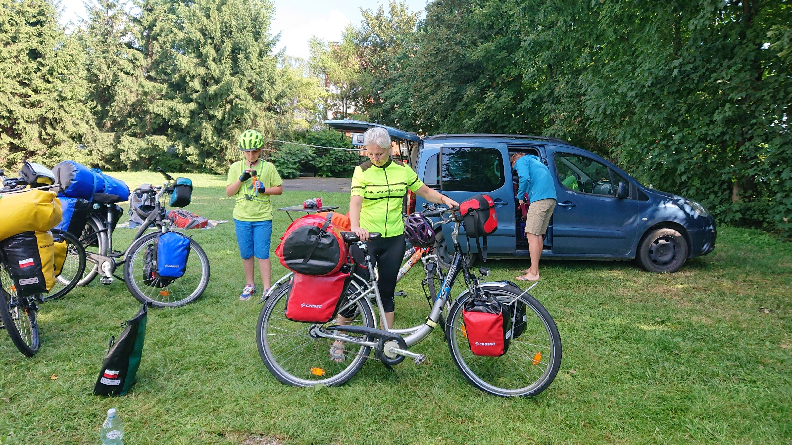 W między czasie uruchomiła się nasza rodzina aby ściągnąć pozostałych uczestników wyprawy. Musieli w 4 tkę pokonać 3 km, jak ja wcześniej z tą różnicą, że mieli do zabrania nie 4 a 6 tkę rowerów... Dzielnie sobie poradzili. Andrzej odebrał Ekipę, Maks nasz chrześniak odebrał mnie i Leona ze szpitala i wszyscy spotkaliśmy się przy Campingu 61 w Elblągu. Mieliśmy tam przenocować i podejmować decyzję w dniu kolejnym - zostajemy i kontynuujemy czy wracamy do domu. Złamanie z przemieszczeniem nie należy do prostych. Mogą wystąpić komplikacje. Wracamy, jutro kontrola i w ciągu najbliższych kilku dni kolejne prześwietlenie - dopiero wtedy będziemy mogli podjąć decyzję o kontynuacji lub nie podróży... Do Warszawy wróciliśmy o 4 tej nad ranem. Dobrze wrócić do siebie!